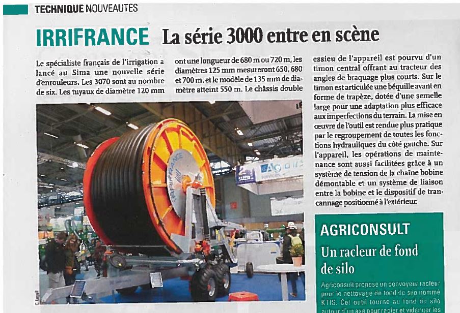 Irrifrance est à nouveau à l’honneur pour ses innovations, dans la rubrique Technique Nouveautés de la parution du 5 avril de France Agricole.